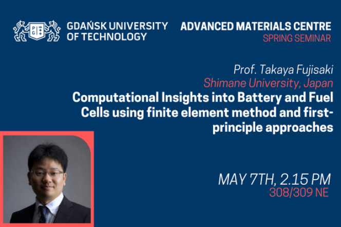 Wykład nt. „Computational Insights info Battery and Fuel Cells using finite element method and first-principle approaches” odbędzie się w dniu 7 maja b.r., o godz. 14:15, w Sali 308/309 NE, na 3 piętrze budynku nr 42 (WETI B).
